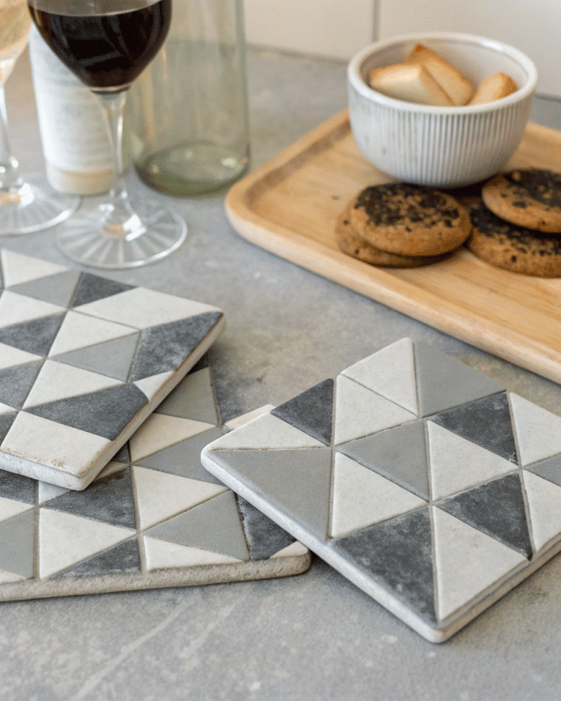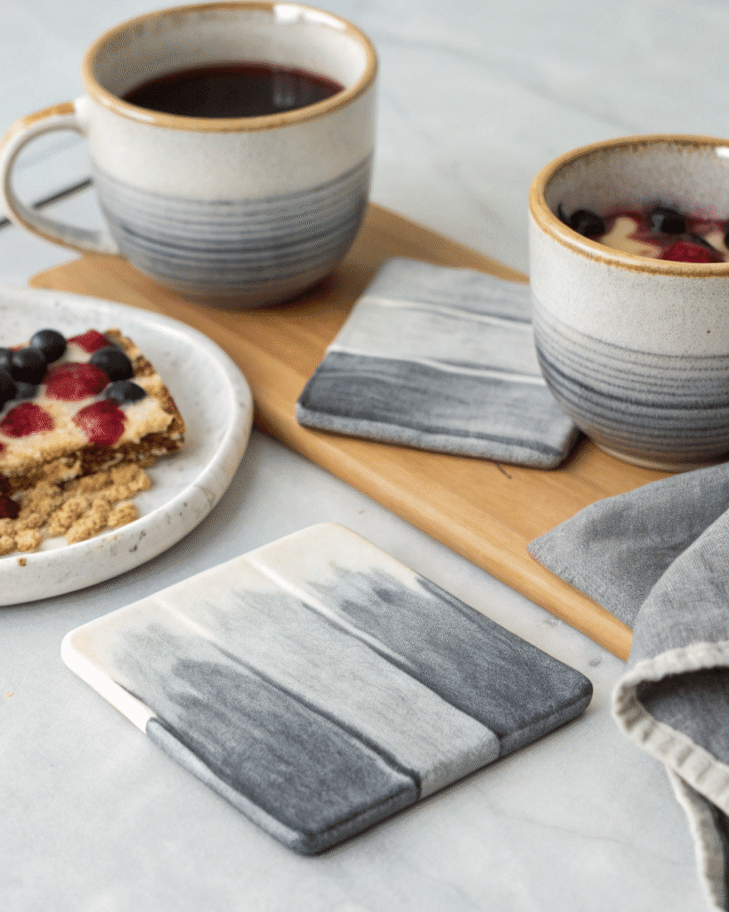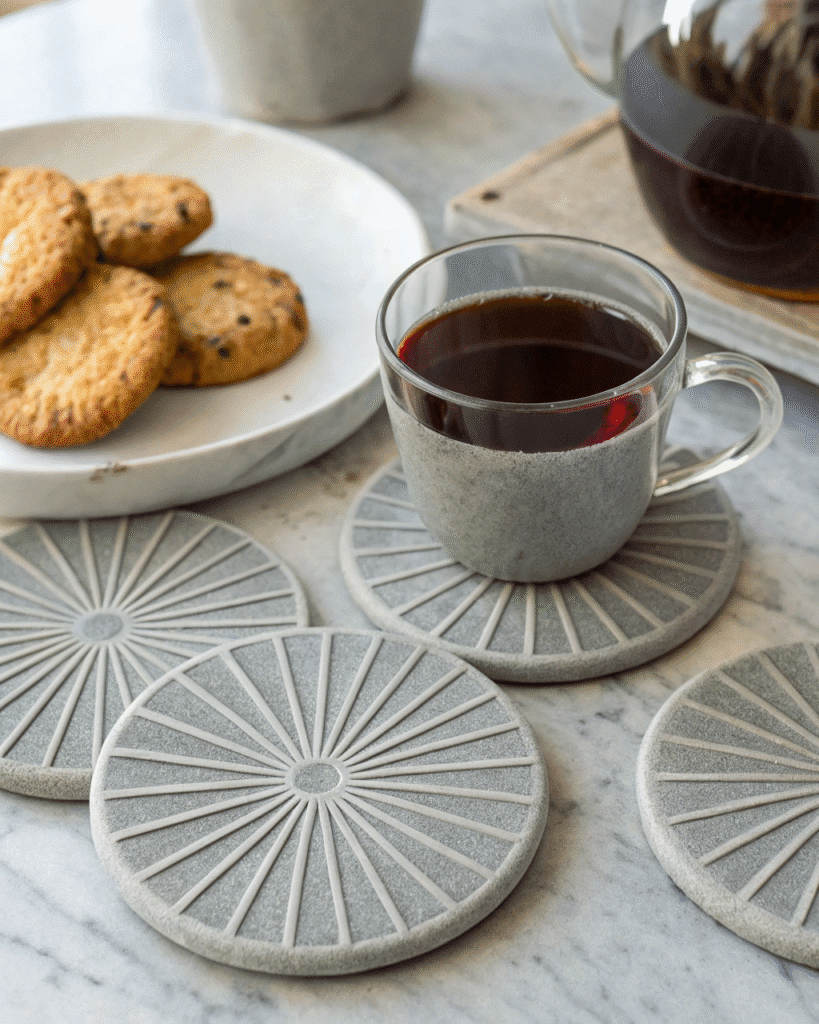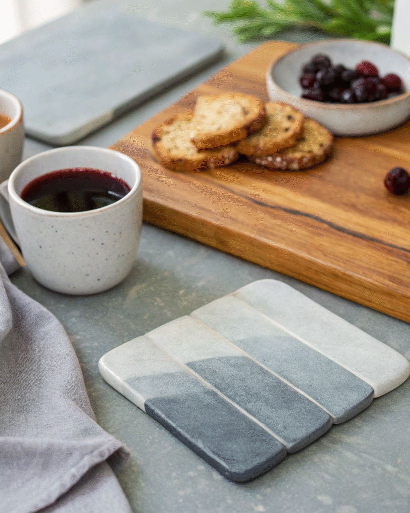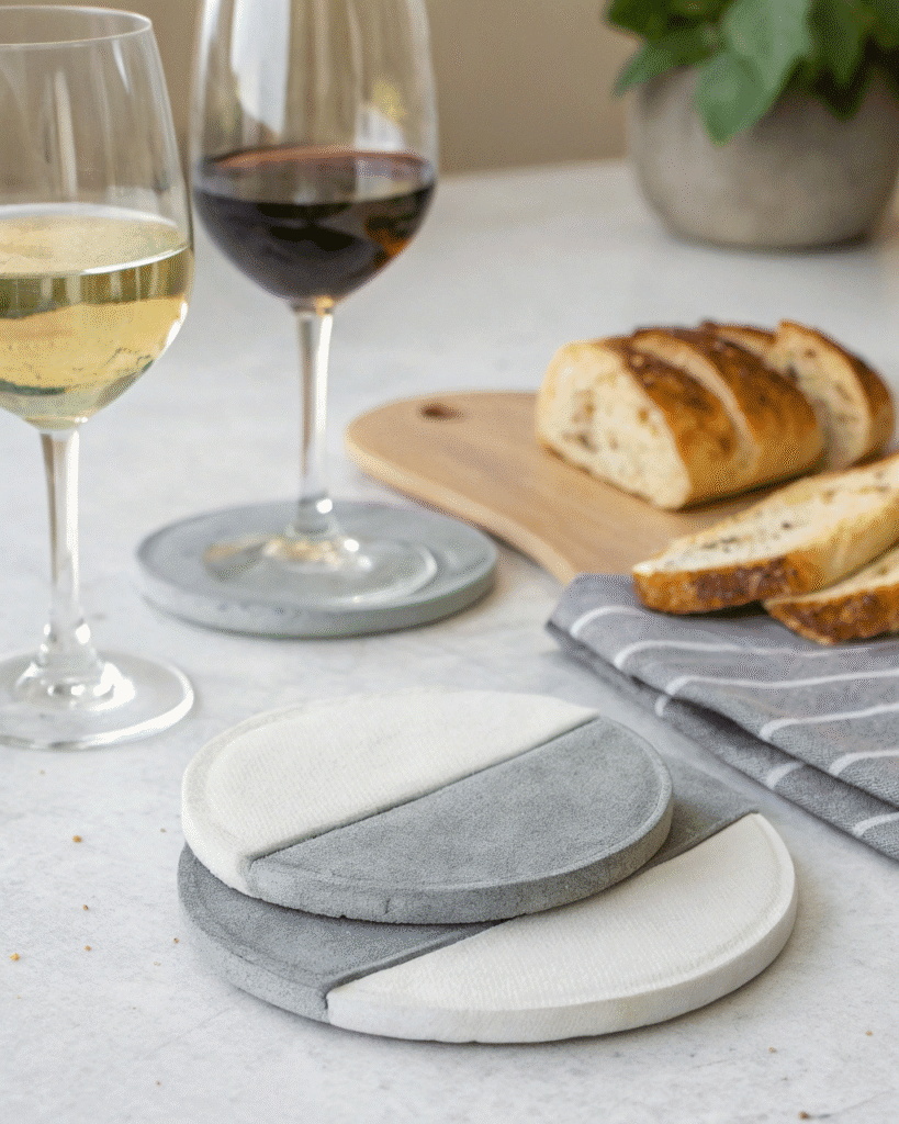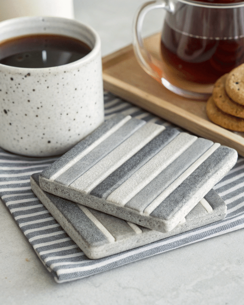 Gray gradient coasters bring a sleek, modern look to everyday tables.