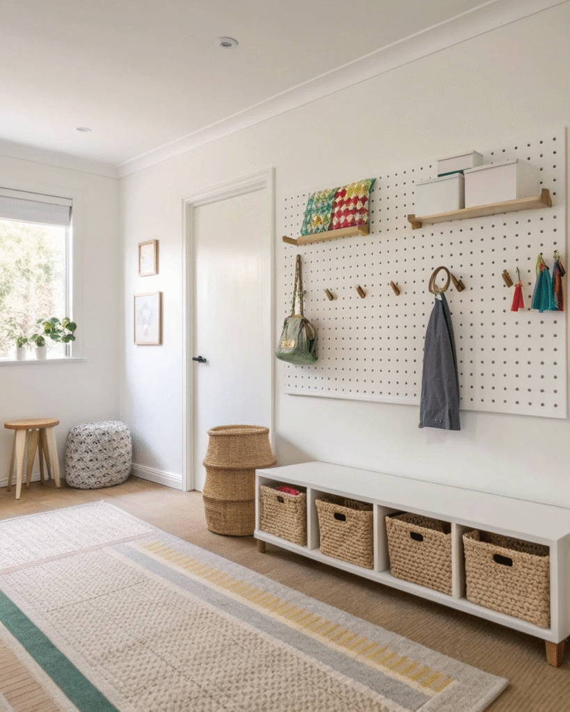 Pro Tip: Paint the pegboard in a neutral tone so it blends seamlessly with the wall.
