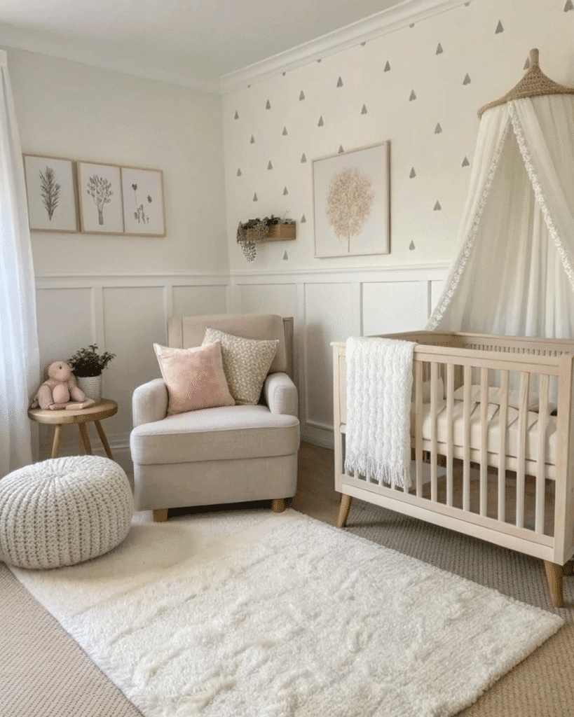 Choose soft whites, creams, or muted pastels to create a calm, cozy atmosphere that soothes your baby.