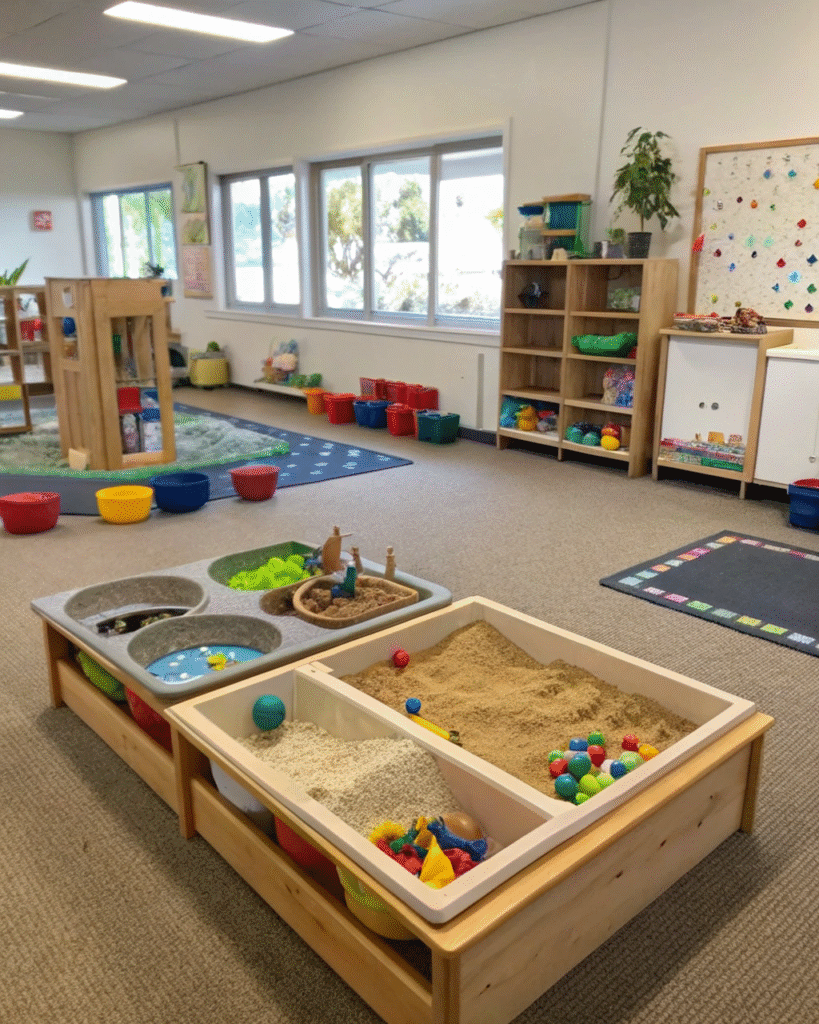 Incorporate textures, sand trays, or water tables to stimulate touch and exploration.