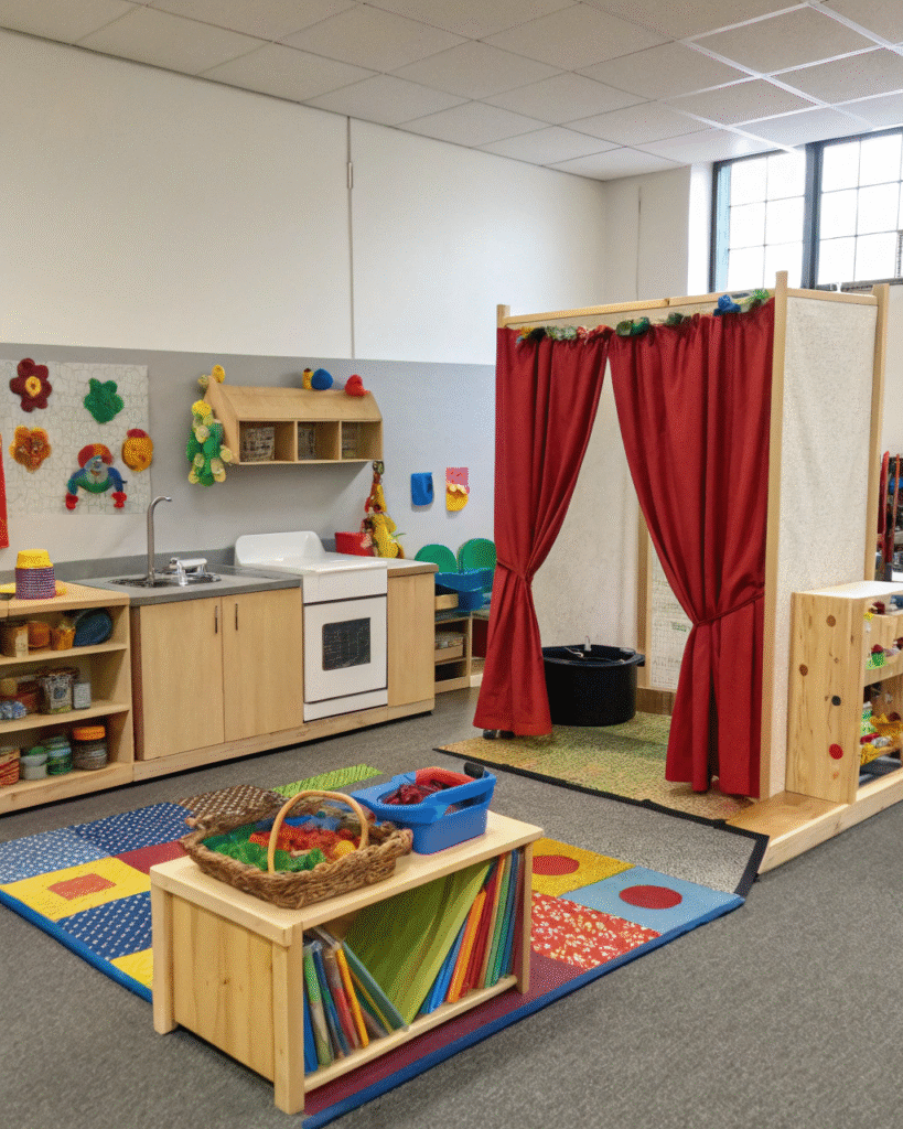 Include a mini kitchen, workshop, or puppet stage to inspire imaginative storytelling.