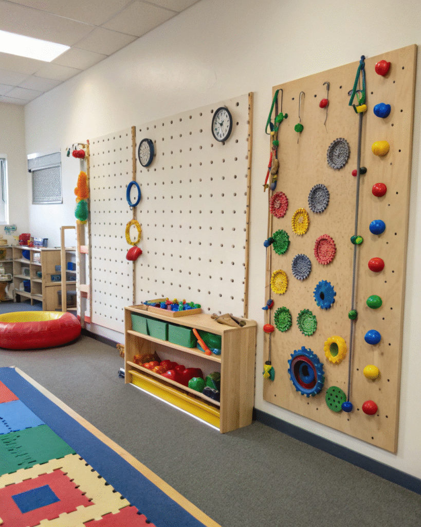 Attach pegboards, gears, or sensory panels for vertical engagement.