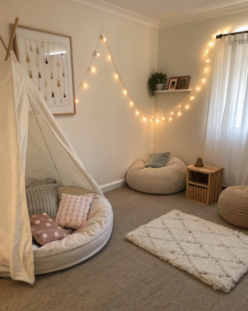 Pro Tip: Add fairy lights or a small canopy for an inviting storytime space.