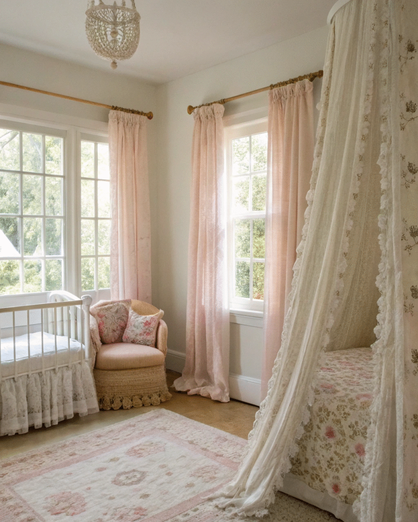 Soft, flowy fabrics give the room an old-world, dreamy feel.